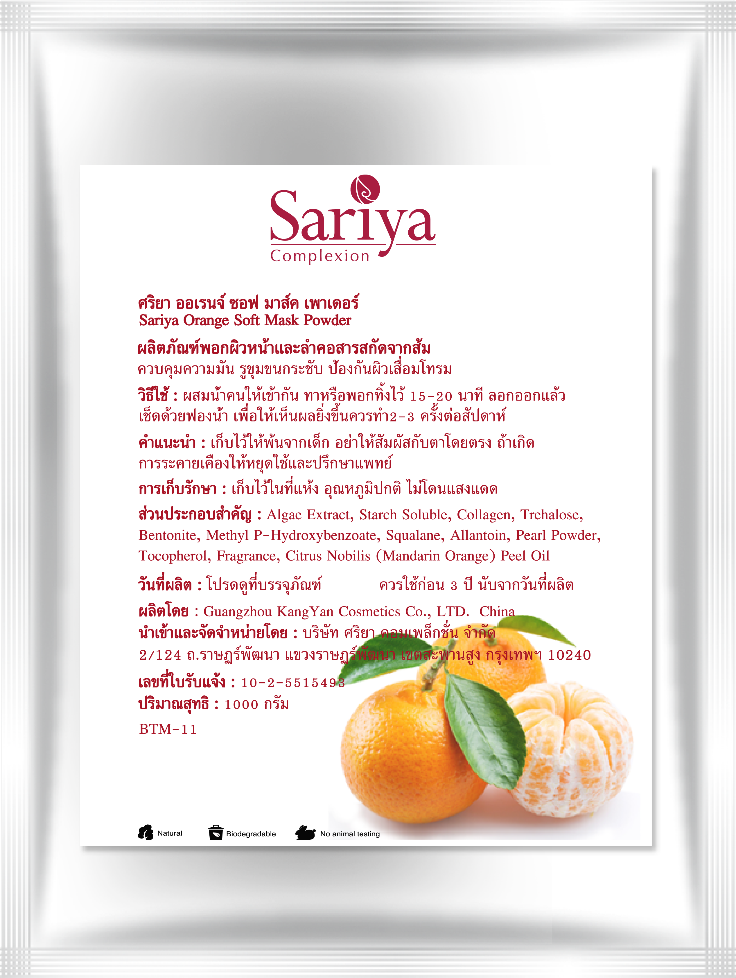 ศริยา ออเรนจ์ ซอฟท์ มาส์ค พาวเดอร์ (มาส์คส้ม) ควบคุมความมัน รูขุมขนกระชับ ป้องกันผิวเสื่อมโทรม